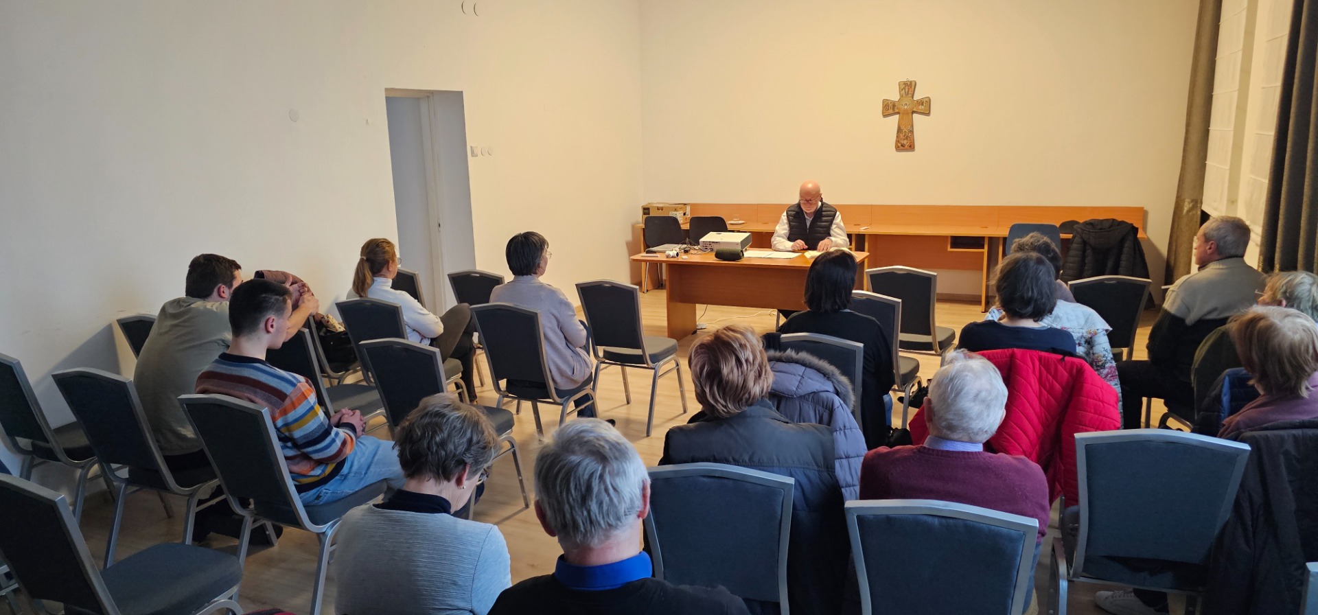 Húsvéti lelkigyakorlat a Romzsa Tódor kollégium dísztermében.